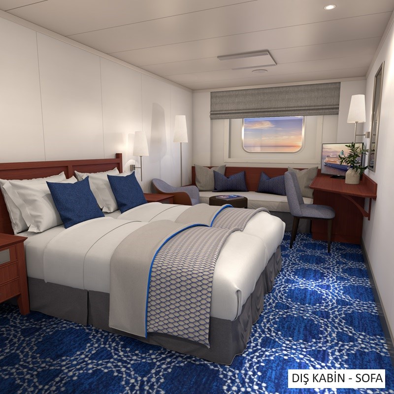 | Tarih | Seçenekler | İki Kişilik Odada Kişi Başı | 11.12.2026 | IA-İç Kabin | 679,00 € | IB-İç Kabin | 779,00 € | IC-İç Kabin | 849,00 € | XBO- Görüş Engelli Dış Kabin | 879,00 € | XA-Dış Kabin | 879,00 € | XB-Dış Kabin | 919,00 € | XC-Dış Kabin | 989,00 € | XD-Dış Kabin | 1.059,00 € | BA-Balkonlu Kabin | 1.389,00 € | SJA-Suit | 1.519,00 € | SJB-Suit | 1.599,00 € | SG-Grand Suit | 1.909,00 € | SH- Grand Suit | 1.919,00 € |